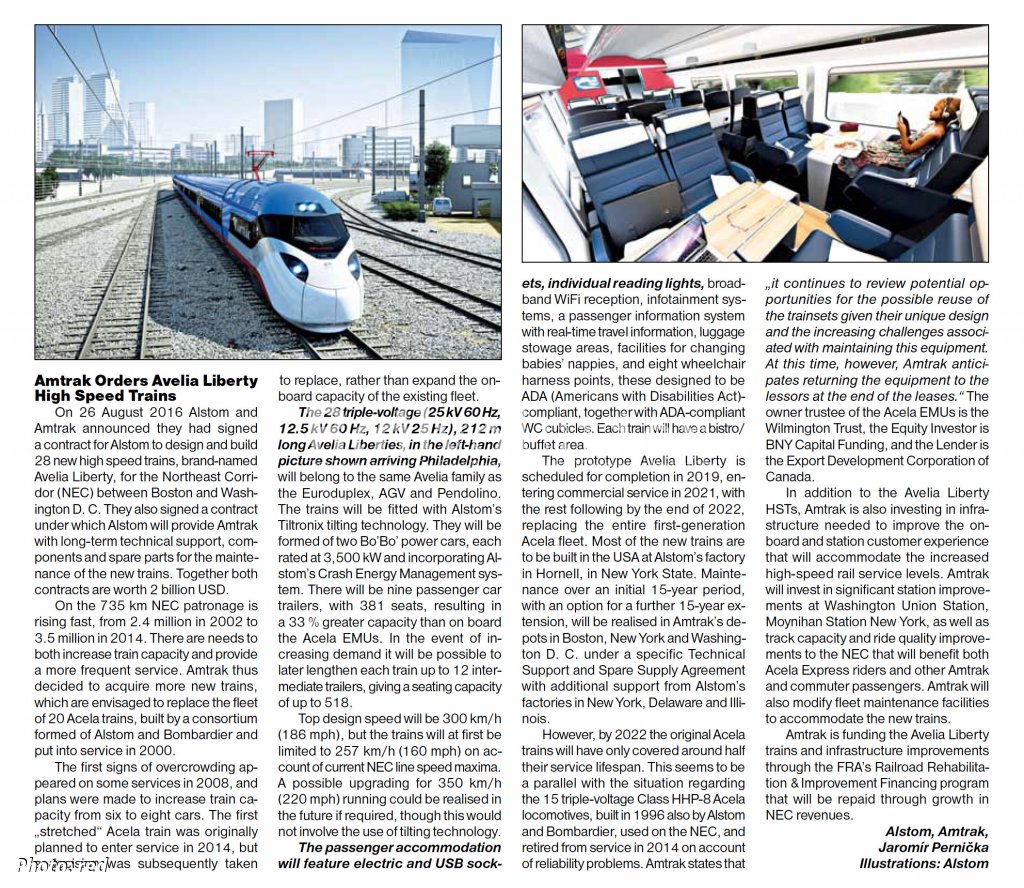 On 26 August 2016 Alstom and Amtrak announced they had signed a contract for Alstom to design and build 28 new high speed trains, brand-named Avelia Liberty, for the Northeast Corridor (NEC) between Boston and Washington D. C. They also signed a contract under which Alstom will provide Amtrak with long-term technical support, components and spare parts for the maintenance of the new trains. Together both contracts are worth 2 billion USD.