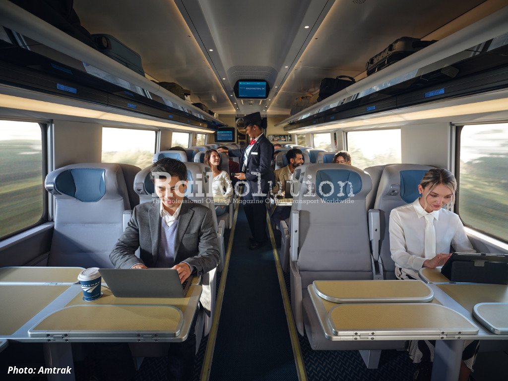 The passenger accommodation will feature electric and USB sockets, individual reading lights, broadband WiFi reception, infotainment systems, a passenger information system with real-time travel information, luggage stowage areas, facilities for changing babies’ nappies, and eight wheelchair harness points, these designed to be ADA (Americans with Disabilities Act)-compliant, together with ADA-compliant WC cubicles. Each train will have a bistro/buffet area.