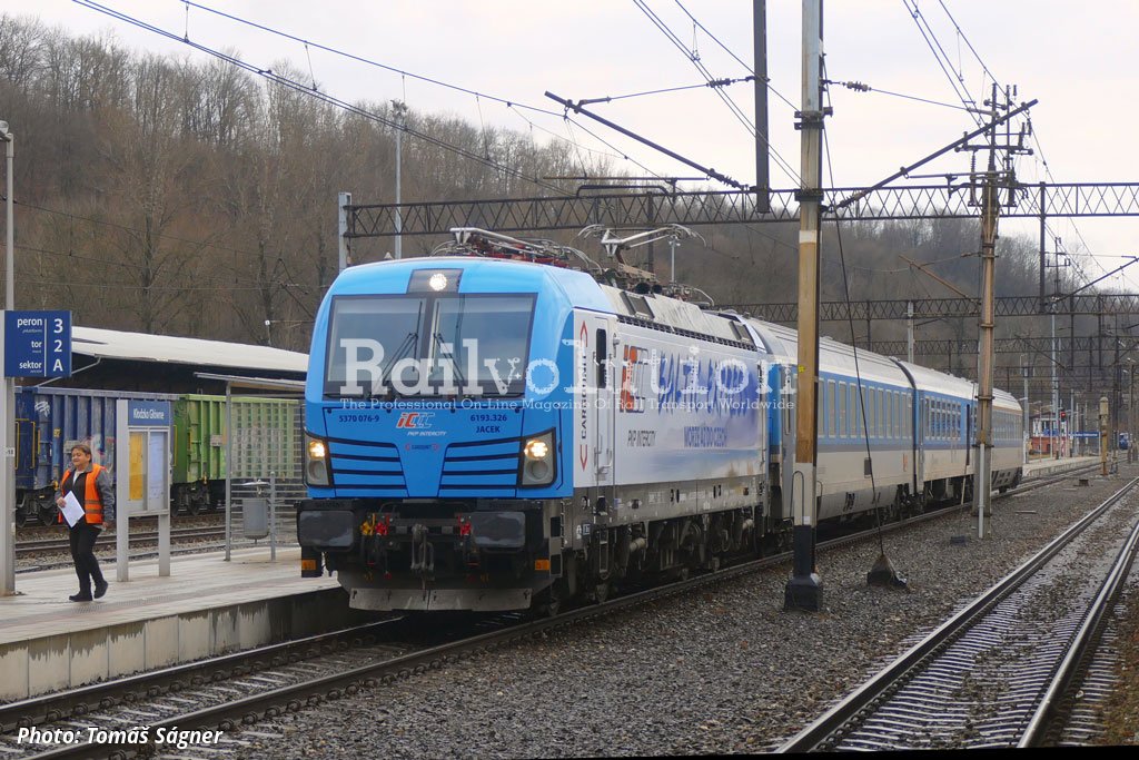 The trains are hauled along the entire route by PKP IC locomotives, with a changeover in Wrocław. On the Wrocław - Praha section, they are covered by three days out of a five-day diagram in which PKP IC is deploying all five Vectrons, which it rents from CARGOUNIT on the basis of newly concluded contracts for the rent of 3 + 2 locomotives for a period of 36 months. These are 5 370 073 - 076 and 092, three of which, 5 370 075, 076 and 092, were provided with special vinyls promoting the new sevice including the inscriptions (in Polish) „Sea to Bohemia", the others are in the standard black color of the pool.