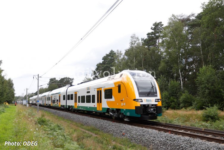 On the other lines operated by ODEG, the existing KISS EMUs (16 four-car Class 445 sets on Lines RE2 and RE4) and Lint 54 DMUs (eight two-car sets for Lines RB33, RB37, RB51) are being deployed.
