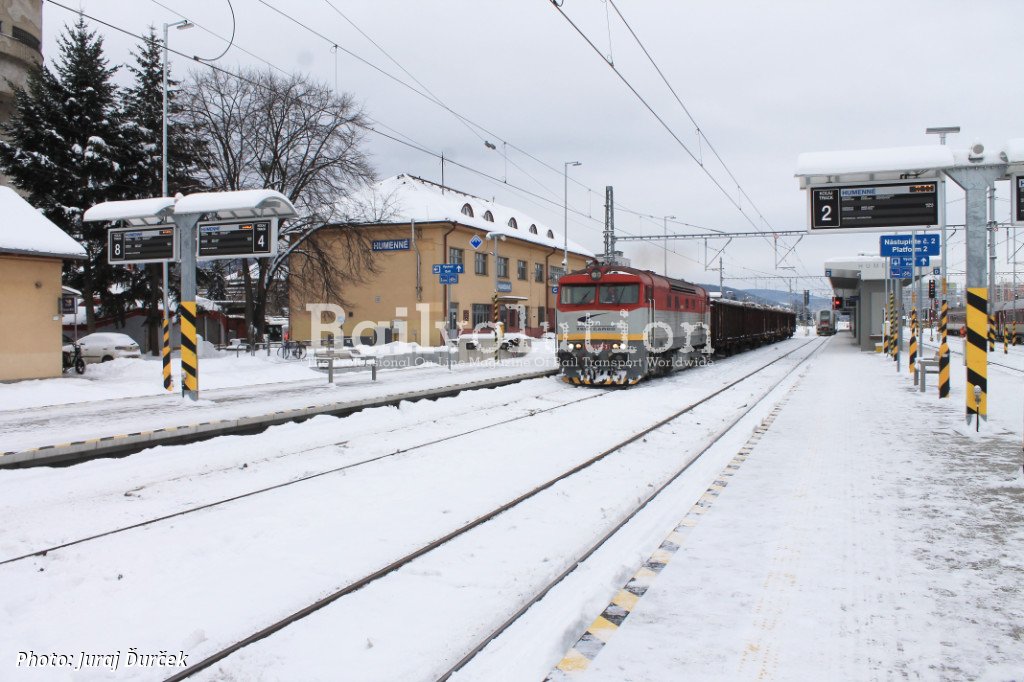 However, further beyond Strážske to Humenné, ZSSK CARGO trains only run with diesel locomotives, because there is no loading/unloading point at the Humenné station, so trains heading to Medzilaborce and Stakčín mainly pass through. They transport wood from local forests and are led by ZSSK CARGO‘s Class 751 and 752 locomotives, sometimes Class 742. Other operators run to Strážske (for Chemko) in both electric and diesel traction.