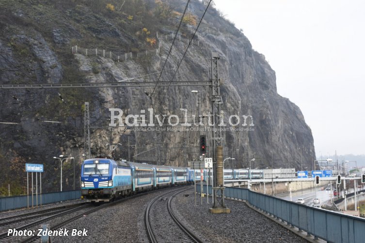 2) The European Locomotive Leasing Group, one of the leading asset managers in the European rail market, based in Wien and München, is accelerating its international expansion. By 2025, it intends to invest up to 315 million EUR in the expansion of its fleet. The photo from Ústí nad Labem on 19 November 2023 shows Vectron 193 297 at the head of EC 379 "Berliner" Kiel Hbf - Praha Hbf.