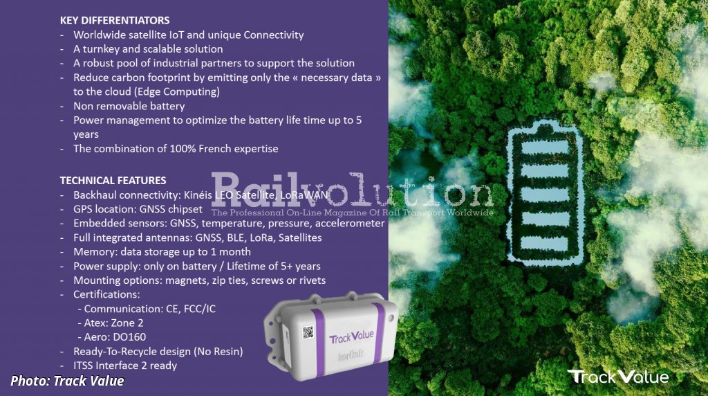 “Track Value is the first operational solution that covers the majority of needs within the freight and logistics industry. It is based on proven technologies and expertise that meet the needs of the market. The added value of the solution is further enhanced by its partnership with Kinéis, which provides real-time global coverage,” said Raphael Doutrebente, Chairman of Europorte.