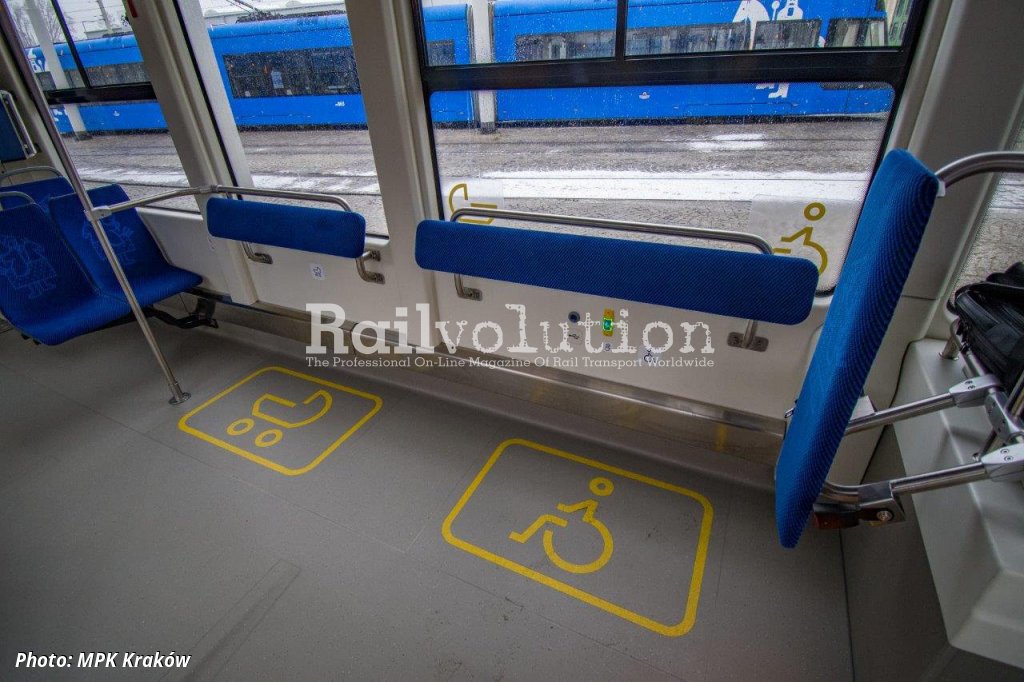 The new Lajkonik IIs are three-car vehicles with four bogies. There is more space with a low floor, as well as more space for people in wheelchairs. Special backrests for standing passengers will also be a novelty. The trams will carry 238 passengers, including 75 seating. Two Lajkoniks out of the 60 will be designed to run without catenary, while the others will be prepared to use this solution in the future. In this way, MPK is continuing a project which will enable its trams to run in the future also on routes where catenary is not available.