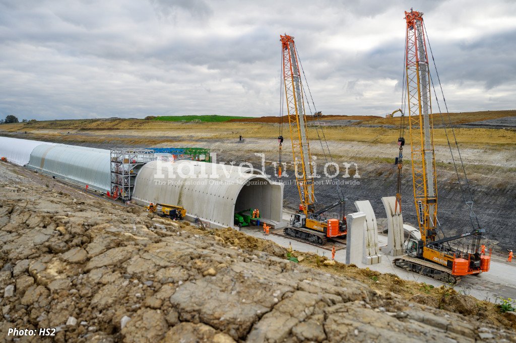 Engineers working for the high-speed rail project have already assembled the first kilometre of the structure and the temporary realignment of the B4525 will allow work to begin on the next stage of the tunnel. Assembled from precast concrete segments, the tunnel is in an ‘M’ shape, with separate halves for northbound and southbound trains. Inspired by similar structures on the French high-speed network, the approach promised to be quick to assemble, with much of the work done offsite. The nearby Chipping Warden green tunnel uses a similar design and the teams at the two tunnels have been able to learn lessons from each other.
