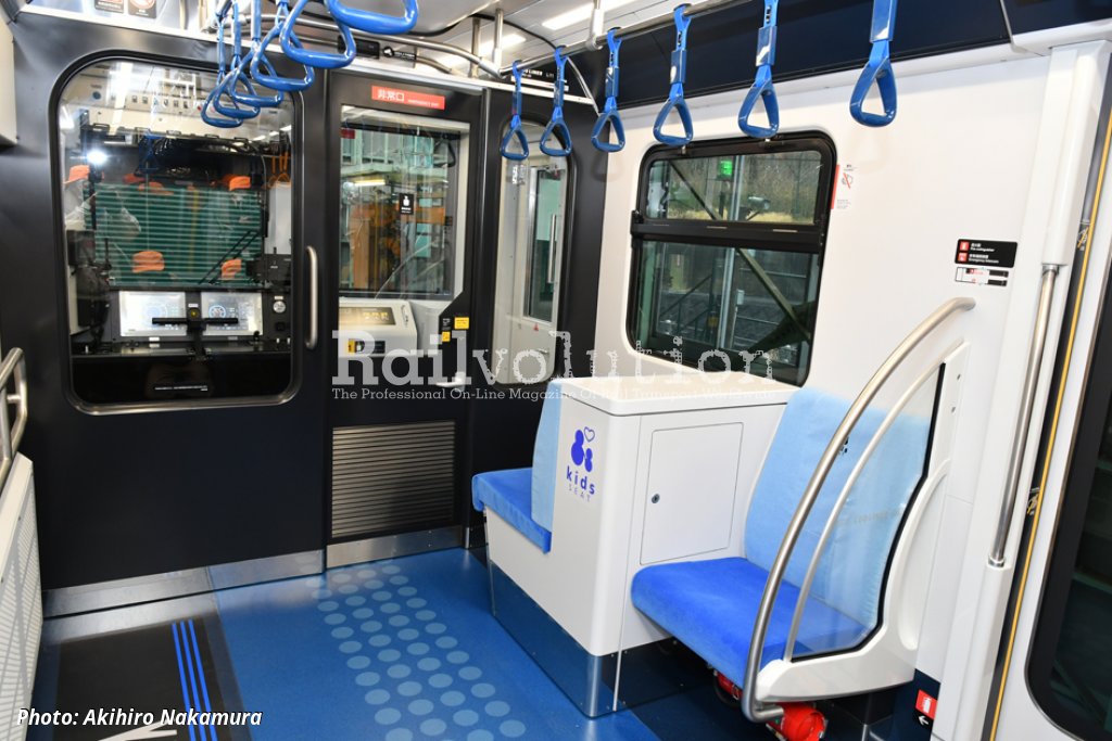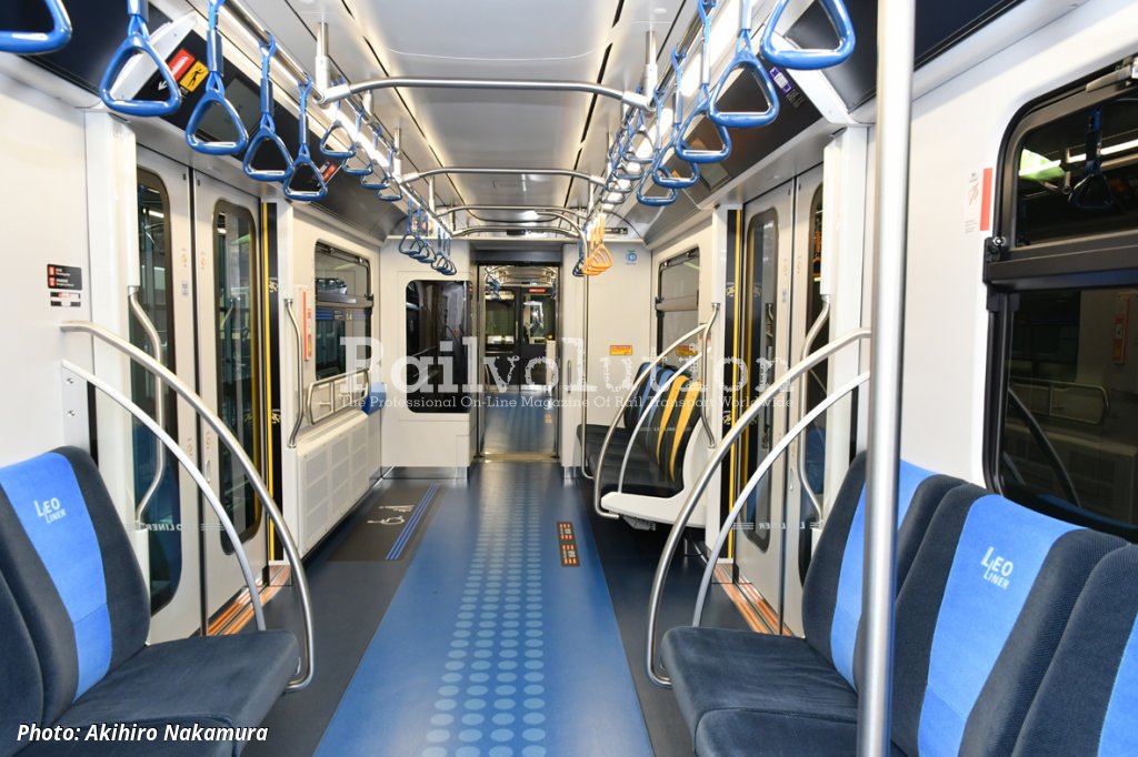The HVAC has now a 30 % greater cooling capacity. Design changes of bogies has been adopted to improve reliability, maintainability as well to reduce lateral shaking. An interesting feature is the children's seats located at the front of the end cars behind the driver's cab, allowing children to enjoy the view from the front window. In addition, each vehicle has a multipurpose area for wheelchairs or prams. The capacity is 144 passengers.