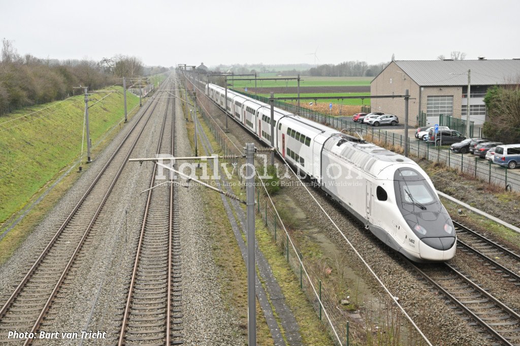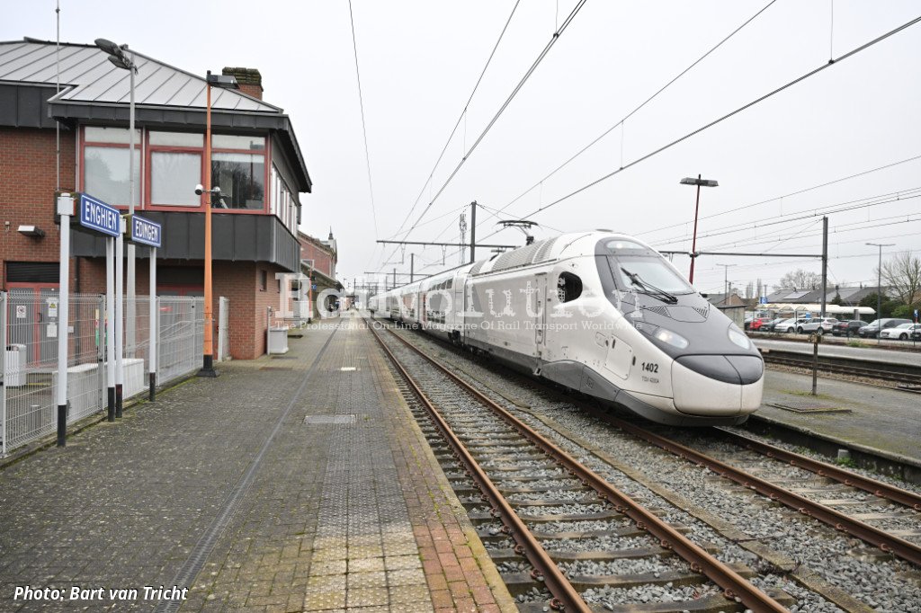 At present the new TGV-M unit 1402 is on test in Belgium. It arrived to this country from Villeneuve-Saint-Georges-Triage in France at Vorst (Forest) in Brussels on 23 January 2026. Then it did some tests between Le Coucou and Ath and subsequently it started tests between Edingen and Ath. On 24 February the test runs were executed on the Edingen - Silly - Ath section with the aim to check the current harmonics on a 3 kV DC line, which parallels the HSL to France at Silly.