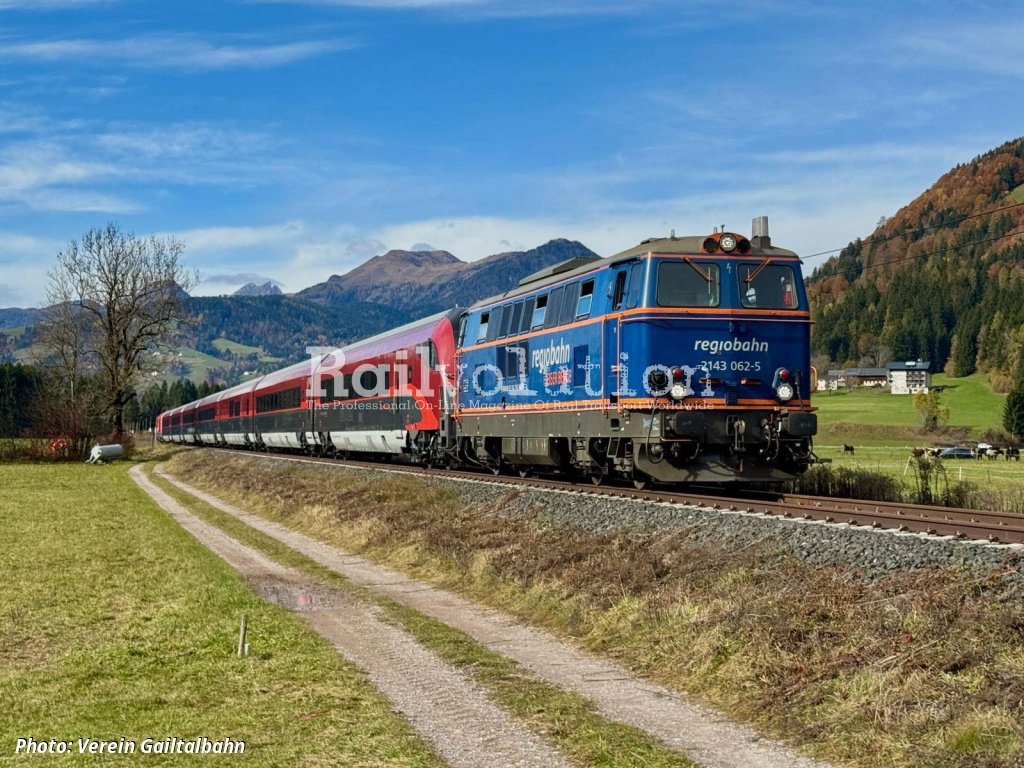 Due to such a major intervention in the vehicle structure, interference current measurements had to be performed on the first modernized railjet. The test runs were carried out by ÖBB from 26 to 30 October 2025 on the Gailtalbahn, which is the non-electrified Hermagor - Kötschach-Mauthen line. The railjet 047 was brought to Hermagor from Wien via the Koralmbahn on 26 October by Taurus 1116 239. The locomotives 2016 057 of ÖBB and 2143 062 of the regiobahn RB were used for the test runs. All work on the first modernized railjet is to be completed by the end of 2025, after which batch modernizations will begin next year.