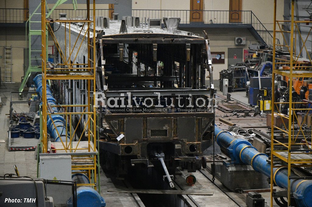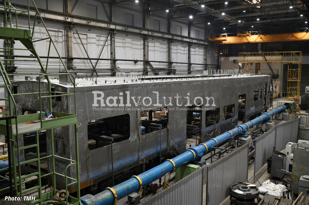 The future HMU is designated model 62-4584. Last year, TVZ produced four bodyshells for the end cars of Models 62-4585 and 62-4586 and two sets of booster sections of Model 62-4587. The bodyshell of the 62-4585 was sent to TIV (Tverskoy institut vagonostroyenia, Tver institute of car building, also part of TMH), where it was subjected to longitudinal compressive forces in the coupling axis on a test bench.